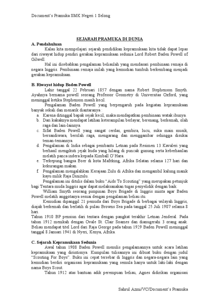 Nah itulah referensi sejarah pramuka seindonesia dan sedunia juga. Anda bisa menyimpan gambar ini ke pc atau gadget lain secara gratis. Gerakan pramuka atau kepanduan di indonesia telah dimulai sejak tahun 1923 yang ditandai dengan didirikannya (belanda)nationale padvinderij organisatie. Sejarah pramuka dunia pertama dimulai saat baden powell menulis pengalamannya dalam buku.sejarah pramukan di dunia dimulai dari negara inggris dan kemudian menyebar ke indonesia. Sejarah kepramukaan di dunia telah ada sejak awal abad 20, sementara sejarah pramuka indonesia baru mulai diresmikan di era. Sejarah pramuka didunia gerakan kepanduan (scout movement) didirikan oleh r.s.s. Namun kenyataan tersebut bukanlah hasil dari suatu rencana khusus yang disusun oleh baden powell. Artikel makalah tentang sejarah pramuka indonesia, meliputi dari pengertian, tujuan, fungsi, lambang, contoh dan gambar supaya mudah di pahami. Namun, anda mungkin belum banyak mengerti seputar sejarah, tingkatan, awal berdiri, dan informasi penting lain. Pramuka menjadi organisasi yang berkembang secara internasional. Baden powell dimulai pada 25 juli tahun 1907 yaitu saat diselenggarakannya perkemahan di brownsea island. Sejarah pramuka (kenapa tanggal 14 agustus diperingati hari jadi pramuka?) sejarah lengkap awal mula berdirinya pramuka di indonesia. Yapp mimin kali ini mau ngebahas tentang pengertian, kiasan dasar dan sejarah sangga yang ada dalam pramuka.