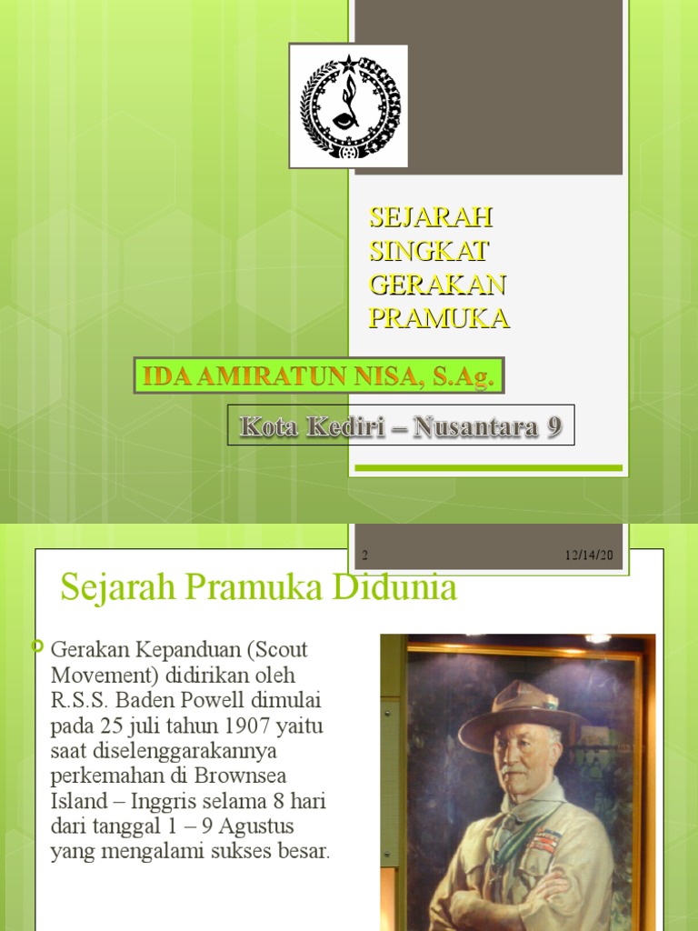 Hari kebangkitan nasional, namun bagi gerakan pramuka memiliki arti khusus dan merupakan tonggak sejarah untuk pendidikan di. Menjelaskan mengenai sejarah pramuka di dunia serta menceritakan tentang riwayat hidup baden powell si bapak pramuka dunia. Namun kenyataan tersebut bukanlah hasil dari suatu rencana khusus yang disusun oleh baden powell. Sejarah pramuka (kenapa tanggal 14 agustus diperingati hari jadi pramuka?) sejarah lengkap awal mula berdirinya pramuka di indonesia. Namun, anda mungkin belum banyak mengerti seputar sejarah, tingkatan, awal berdiri, dan informasi penting lain. Gerakan pramuka secara resmi diperkenalkan kepada seluruh rakyat indonesia pada tanggal 14 agustus 1961 bukan saja di ibukota jakarta, tapi. Gagasan untuk memperingati 12 april sebagai hari bapak pramuka indonesia atau hari hamengku. Pramuka menjadi organisasi yang berkembang secara internasional. Pramuka merupakan akronim dari praja muda karana yang bermakna rakyat. Sejak baden powell menuliskan pengalamannya dalam buku scouting for boys pada tahun 1908, hal ini dianggap sebagai cikal bakal dari lahirnya gerakan pramuka. Yapp mimin kali ini mau ngebahas tentang pengertian, kiasan dasar dan sejarah sangga yang ada dalam pramuka. Baden powell dimulai pada 25 juli tahun 1907 yaitu saat diselenggarakannya perkemahan di brownsea island. Sejarah pramuka didunia gerakan kepanduan (scout movement) didirikan oleh r.s.s.