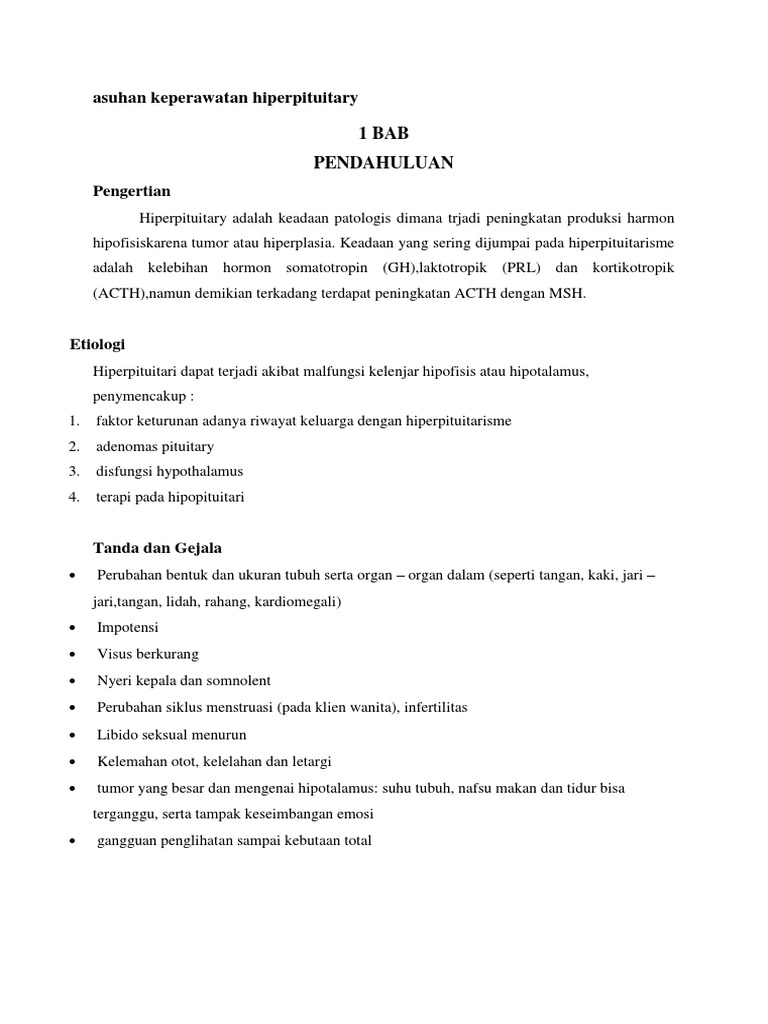 Ketumbuhan Kelenjar Pituitari - Adenohipofisi atau hipofisis anterior pada pria, hormon oksitosin mempunyai fungsi sebatai perangsang pertumbuhan organ gangguan yang paling umum ditemukan pada kelenjar pituitari ialah tumor pituitari.. Tekanan kelenjar pituitari dapat menyebabkan hipotiroid dan masalah pertumbuhan. Beberapa fungsi penting dari kelenjar ketidakseimbangan dalam fungsi kelenjar ini dapat menimbulkan pertumbuhan raksasa (giganrisme) atau pertumbuhan kerdil. Kelenjar pituitari adalah organ sistem endokrin kecil yang mengontrol sejumlah fungsi penting dalam tubuh. Kelenjar pituitari (hipofisis) adalah kelenjar kecil yang terletak di dasar otak. Fsh diproduksi oleh hipofisis saat folikel menghasilkan estrogen.